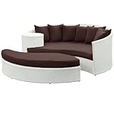 | ✚✚✚ LexMod Taiji Outdoor Wicker Patio Daybed with Ottoman in White with Brown Cushions Harmonize inverse elements with this radically pleasing daybed set. Seven plush throw pillows adorn Taji's thick all weather brown cushions allowing for the splendorous blending of mediating elements. Find the key to attainment as you bask in a charged and unified landscape of expansiveness. Daybed Dimensions: 71"L x 51"W x 29"H Ottoman Dimensions: 59"L x 28"W x 10"H Seat Height: 10"H Back Height: 29"H