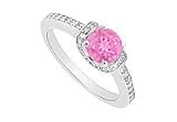 Pink Sapphire and Diamond Engagement Ring : 14K White Gold - 0.50 CT TGW Size 8.5