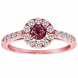 14K Rose Gold Halo Round Pink Tourmaline and Diamond Ring (1 cttw, H-I, SI) Size 4 1/2This dazzling sparkling timeless ring is classic and can be used as an engagement ring, anniversary ring, bridal ring, promise ring, proposal ring, fashion ring, wedding ring, cocktail ring and also to represent eternal love between you and that special someone. This 14k rose gold diamond ring is prong set with 18 round white diamonds and 1 round Pink Tourmaline gemstone. The center gemstone measures approximately 3.00 mm in diameter. The total carat weight of the entire ring is approximately 1 carat. The diamonds are H-I color and SI-I2 clarity. The ring band measures approximately 1.90 mm wide and 1.50 mm thick.