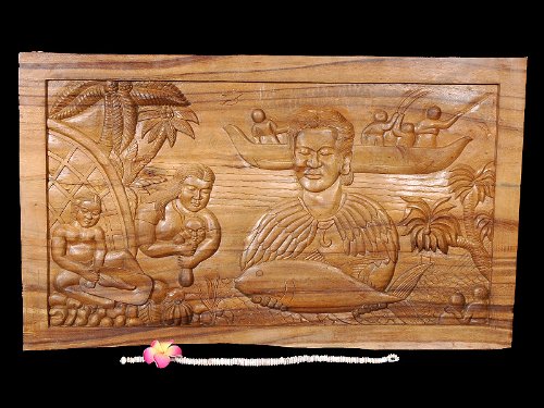 "HAWAIIAN FISHERMAN" RELIEF 40" - ISLAND TREASURE Hawaiian Fisherman Specification: - Wood: acacia koa, made from a single slab of thick acacia Koa - The relief measures 40" X 24" X 3" (100cm X 60cm X 5 cm). Great Hawaiian decor for your home or restaurant decor!