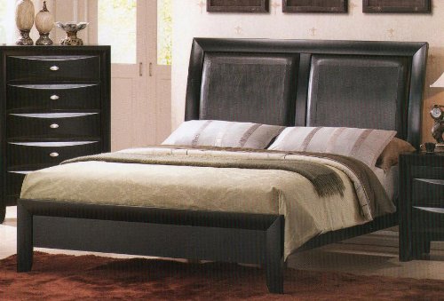 #This contemporary bed will become a stunning centerpiece for your modern bedroom. The headboard features stitched panels, and sleek chamfered edges. The ebony finish is striking, and will go with many different color palettes. This bed is also available i